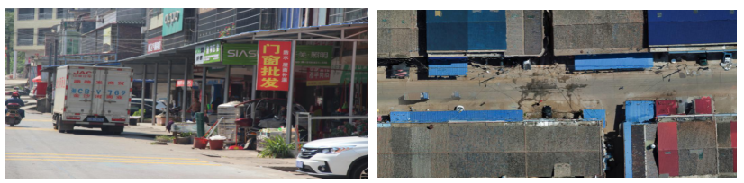 马路市场沿线遮阳棚治理情况。该市场沿线两侧现搭有钢结构遮阳棚36个(见图3),遮阳棚距道路边缘最近0.7米、最远不到1米。根据当地群众反映,2014年当地政府组织过拆除街道沿线的遮阳棚,拆除一户补助300元,沿线两侧遮阳棚基本拆除完毕。但从2018年下半年出现反弹,现在的遮阳棚基本是2018年下半年到2019年上半年所建。