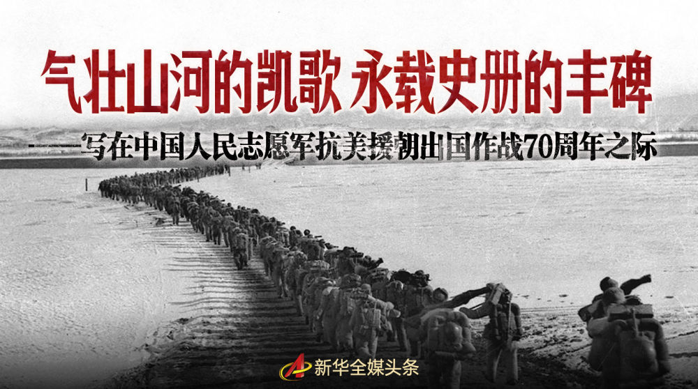 70年前,英雄的中国人民志愿军将士,高举保卫和平、反抗侵略的正义旗帜,雄赳赳,气昂昂,跨过鸭绿江,同朝鲜人民和军队一道,历经两年零九个月舍生忘死的浴血奋战,赢得了抗美援朝战争的伟大胜利。