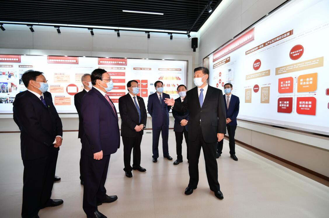 2020年11月12日,浦东开发开放30周年庆祝大会在上海市举行。中共中央总书记、国家主席、中央军委主席习近平在会上发表重要讲话。这是当天上午,习近平等参观“在国家战略的引领下——浦东开发开放30周年主题展”。 新华社记者 殷博古/摄