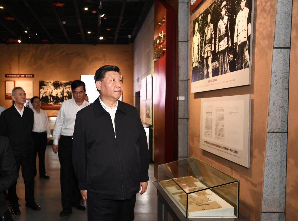 2019年5月20日至22日,中共中央总书记、国家主席、中央军委主席习近平在江西考察,主持召开推动中部地区崛起工作座谈会并发表重要讲话。这是习近平在赣州市于都县中央红军长征出发纪念馆参观,缅怀当年党中央和中央红军在苏区浴血奋战的峥嵘岁月。 新华社记者 谢环驰/摄