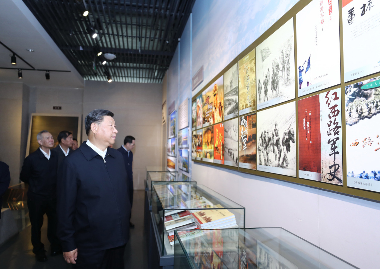 2019年8月19日至22日,中共中央总书记、国家主席、中央军委主席习近平在甘肃考察。这是20日上午,习近平在张掖市高台县参观中国工农红军西路军纪念馆。 新华社记者 鞠鹏/摄