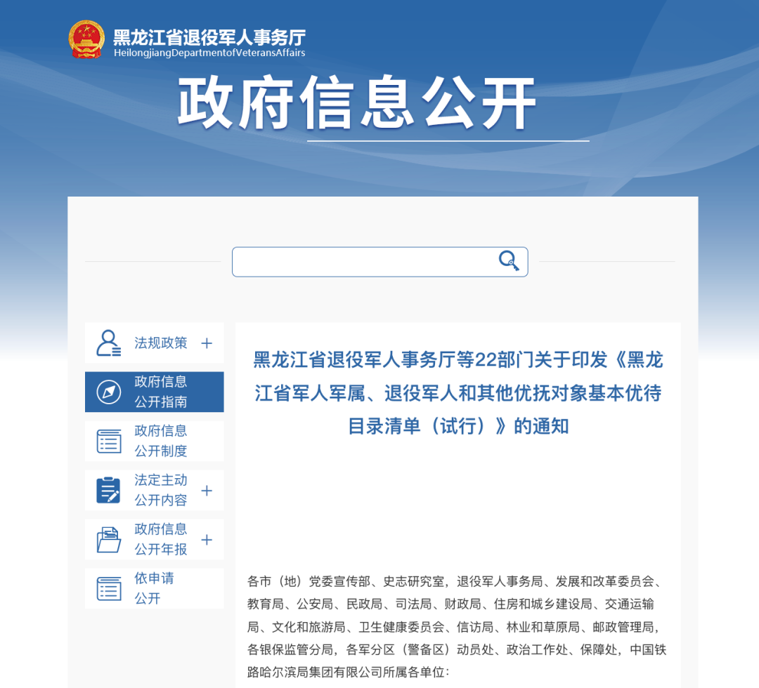 黑龙江省军人军属、退役军人和 其他优抚对象 基本优待目录清单(试行)