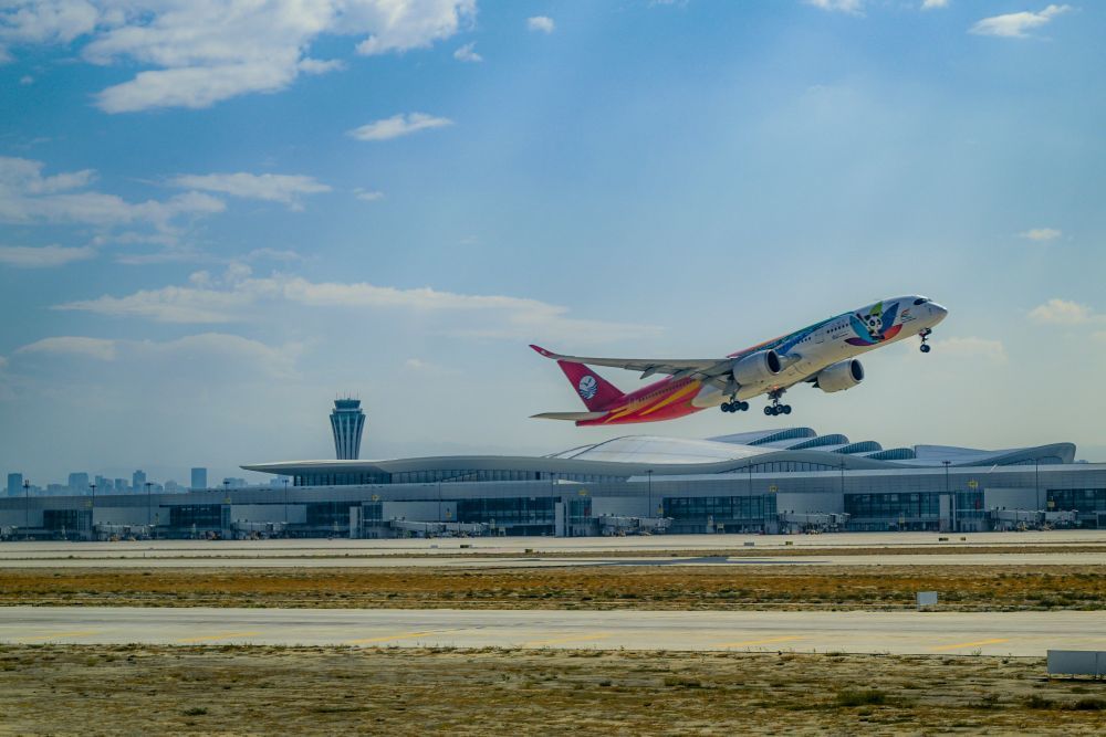 飞机沿着跑道滑行,飞向万里碧空。送别的人群,沉浸在幸福的喜悦中,久久不愿离去。