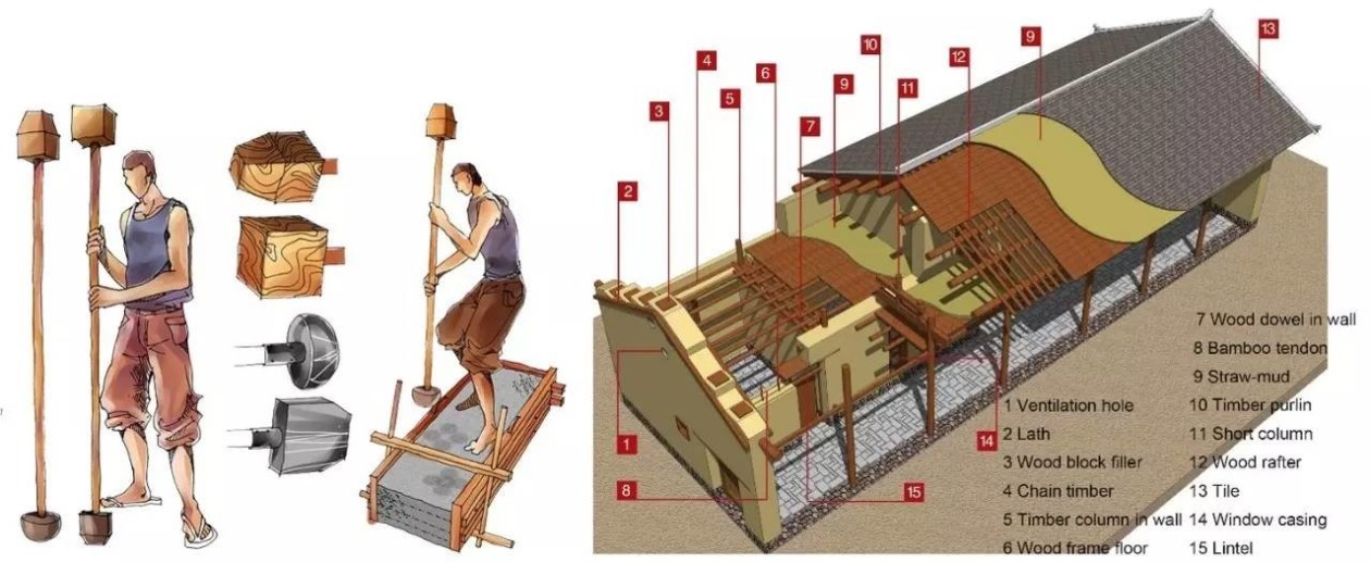 (生土建筑:90%的建筑材料都是当地自然材料,如石头、土、木、草等。)