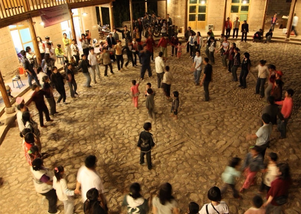 但是他们以前是没有这样一个平整的场地的,所以我们就给他们设计了一个这样的院子,他们在节庆的时候可以在里面跳舞、活动、烧起篝火。那房子就自然而然围绕着这个院子来建。