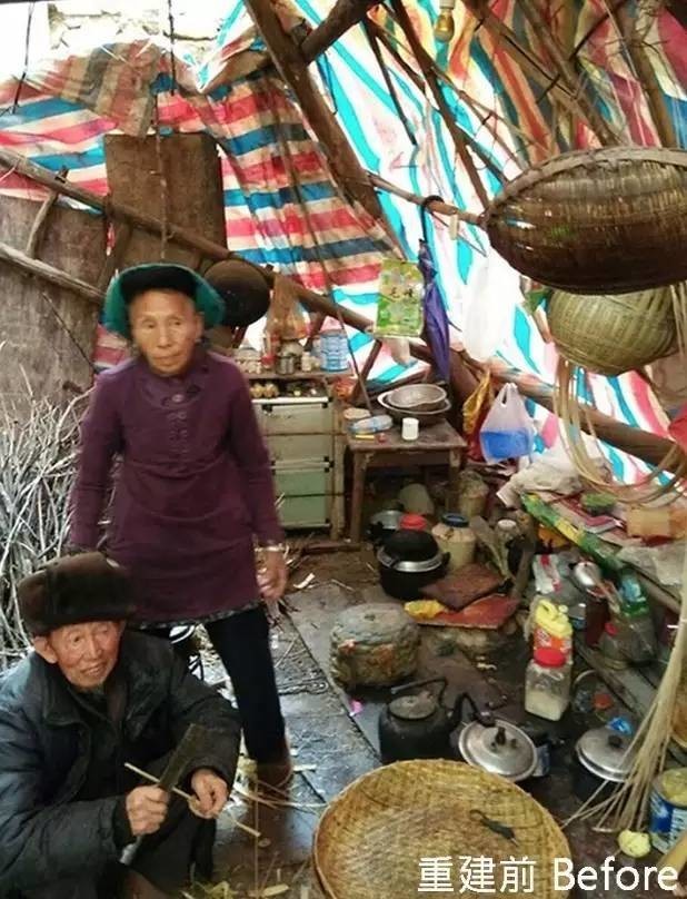 那当然最后我们最欣慰的还是老爷爷老奶奶终于不用住在这样破的帐篷里面了,他们终于有一个干净舒适整洁的生活环境,而且它的土建成本也只有当地砖混住宅的一半左右。