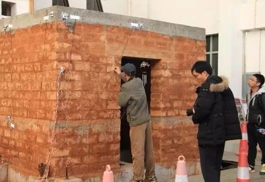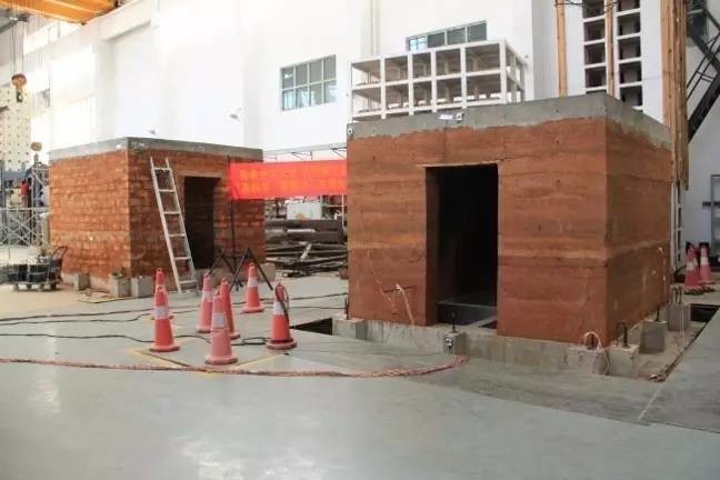 这一套技术能不能满足当地的抗震需求呢?我们在昆明理工大学做了一个这样的振动台的试验。我们把1:1模型的房子夯在了这个振动台上,振动台可以模拟地震波对它各种各样的摧残。这个房子上面的传感器可以看它受了多大的力,有多大的位移。