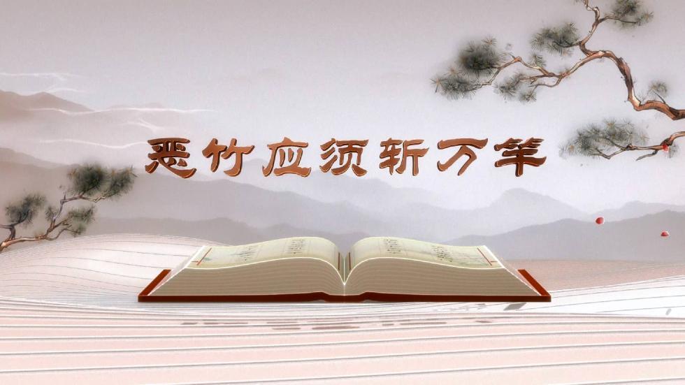 清正廉洁是我们党的政治本色,反腐倡廉是我们党的生命线。《恶竹应须斩万竿》以廉政为主题,从总书记使用过的“新松恨不高千尺,恶竹应须斩万竿”、“善除害者察其本,善理疾者绝其源”、“心不动于微利之诱,目不眩于五色之惑”等典故出发,阐释习近平总书记关于党风廉政建设和反腐败斗争的重要思想;从不敢腐的目标初步实现,不能腐的笼子越扎越牢,不想腐的堤坝正在构筑三个方面,反映了党的十八大以来党风廉政和反腐败斗争取得的巨大成就,展现了党内政治生活气象更新、党内政治生态明显好转、党的执政基础和群众基础更加巩固的生动景象。